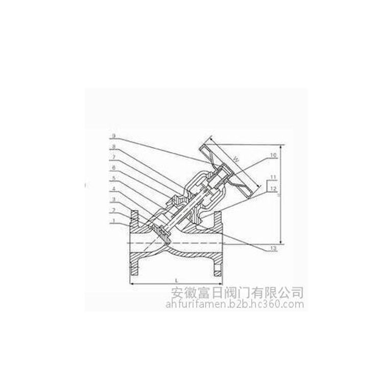 Y型直流式波紋管截止閥外形尺寸各連接尺寸:
