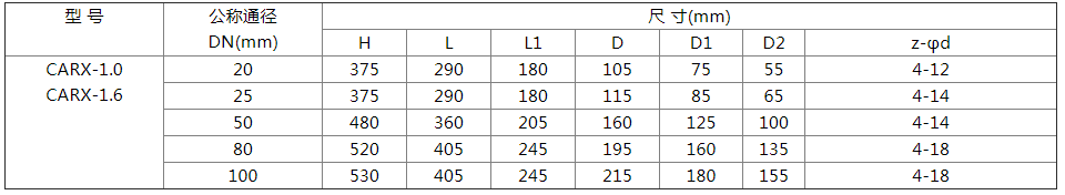 CARX復合式排氣閥每小時排氣量表: