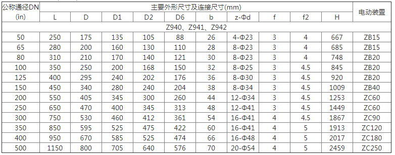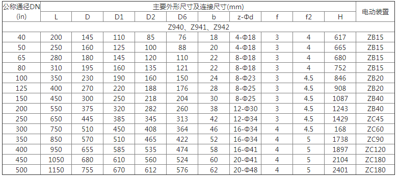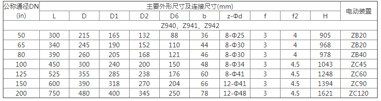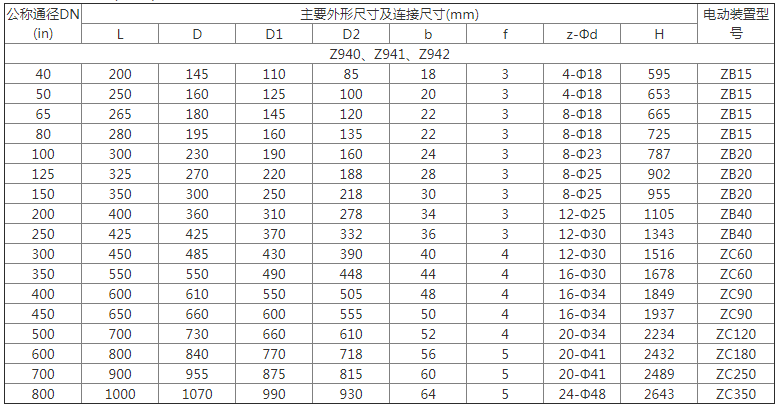 電動法蘭閘閥主要連接及外形尺寸(PN40)
