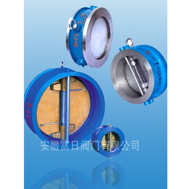 安徽富日閥門有限公司生產的H76X鑄鐵對夾止回閥、H76X對夾蝶式雙瓣止回閥由閥體、閥瓣、閥桿及彈簧等零件組成,采用對夾連接。由于閥瓣的關閉行程短,并且有彈簧加載,可顯著減少水錘現象。該閥主要適用于城市、工業及高層建筑給水、排水管網上。由于其結構長度比一般止回閥短,對有安裝空間限制的場所**適用。