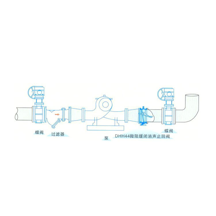 安徽富日閥門生產(chǎn)的DHH44X/H-10/16型微阻緩閉消聲止回閥微阻緩閉蝶型消聲止回閥用于工業(yè)給排水、污水處理廠的水泵出口處,防止管網(wǎng)中介逆流。自動消除破壞性水錘,從而保證水泵和管路不受損壞。該閥主要由閥體、閥瓣、緩沖裝置和微量調(diào)節(jié)閥組成。該產(chǎn)品具有結構新穎、體積小、流體阻力小、運行平穩(wěn)、密封可靠、耐磨損、緩沖性能好等特點,是工業(yè)用水和城巿排污的**產(chǎn)品。主要用于工業(yè)、城市給排水管道和高層住宅**賓館、加壓輸水泵的出口處。在設計上充分考慮了使用環(huán)境的要求,采用斜板式結構,達到無震動、無嘈聲、運行平穩(wěn),確保賓館、住宅環(huán)境安靜,并具有節(jié)能的效果。用延緩關閉的方式使局部倒流水向系統(tǒng)內(nèi)泄流,從而大大降低了停泵倒流的水壓沖力,消除了破壞性水錘峰值的產(chǎn)生,截流密封采用丁晴橡膠,密封性能好、減震耐磨、使用壽命長、維修方便等特點。