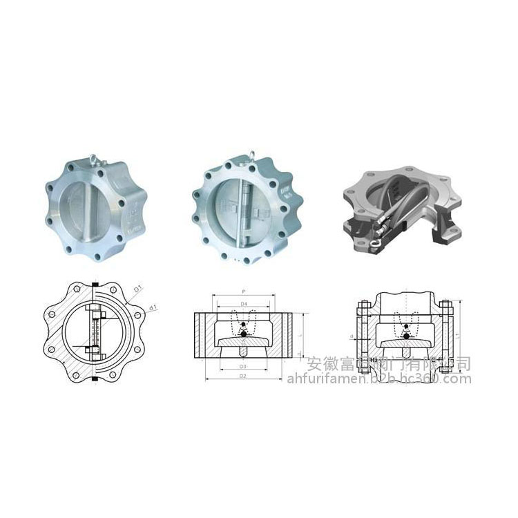 凸耳對夾雙瓣旋啟式止回閥結(jié)構(gòu)特點: